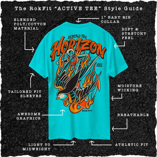 Made from a premium cotton-polyester blend, Active Tees are breathable, moisture-wicking, and quick-drying, perfect for training, running, hiking, or everyday wear. Whether you're pushing limits at the gym or repping RokFit on the go, this tee keeps up.
