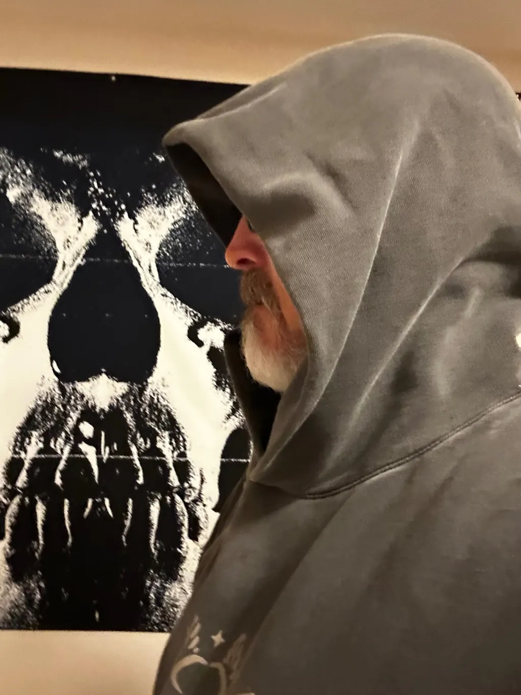 Lay garment flat(face down). Measure from center back neck at hood seam, then along outer edge to sleeve end.